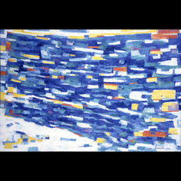 この絵も海そのものではなく、海から伝わる自然の動き、リズム、美しさを描いたものである。末松の感覚によって自然は光に分解され、色彩として再構成される。画面からあふれ出る色彩は見るものを包み込む。