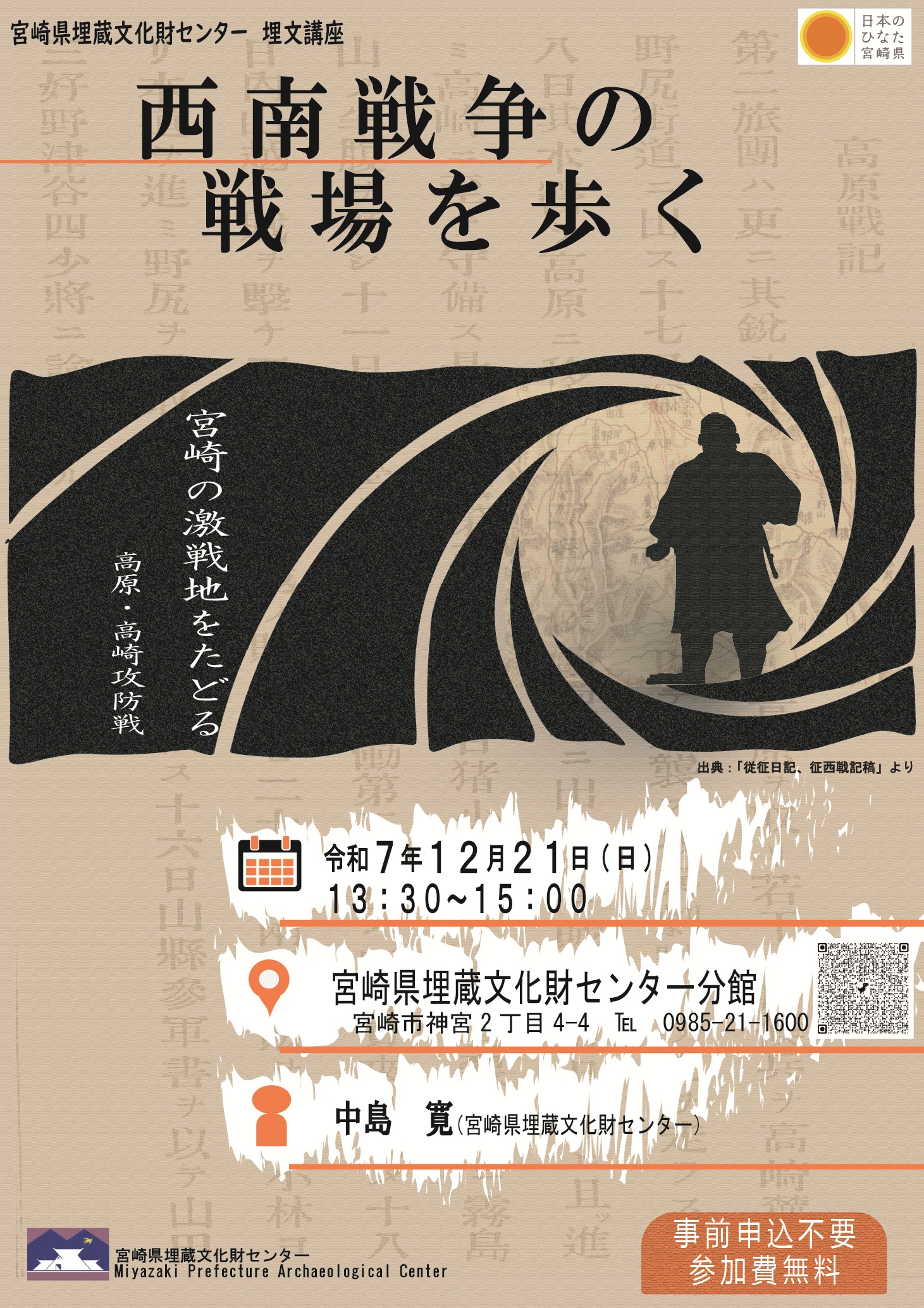 - 12月21日(日)開催 【埋文講座】「西南戦争の戦場を歩く 宮崎の激戦地をたどる」のお知らせ ( 2025.11.14 )