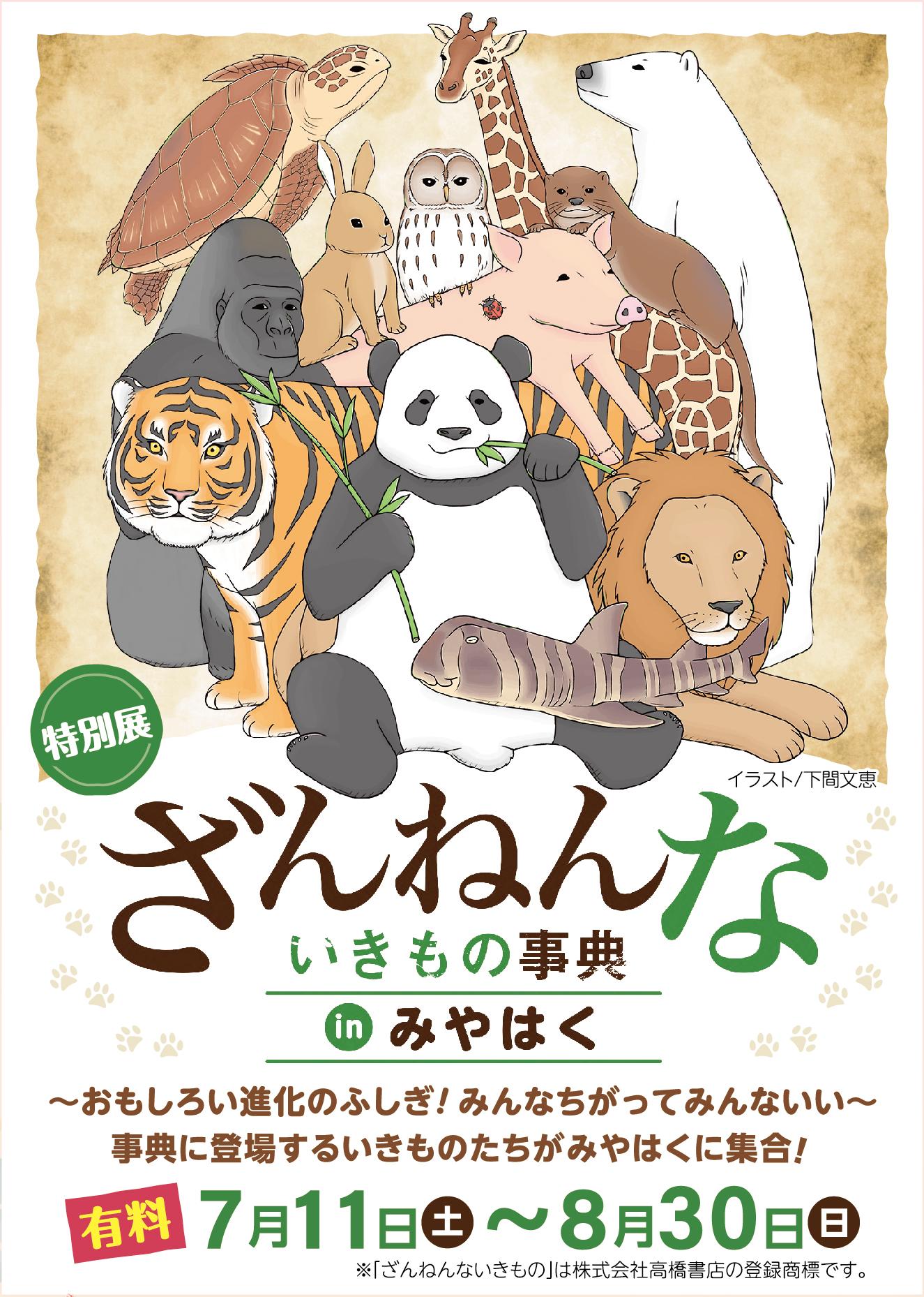 今年の夏、『ざんねんないきもの事典』に登場するいきものたちがみやはくに集合!